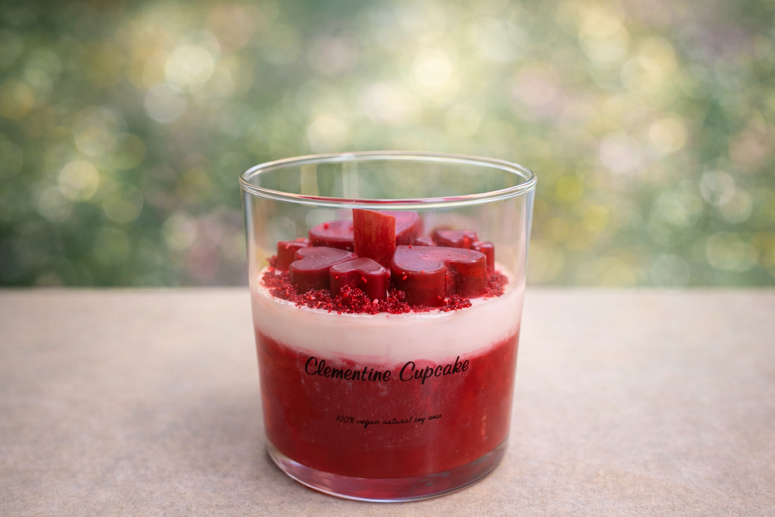 Αρωματικό κερί από 100% φυτική σόγια, με λαχταριστό άρωμα Clementine Cupcake που συνδυάζει νότες ζουμερού μανταρινιού με γλυκιά, κρεμώδη αίσθηση cupcake. Διακοσμημένο με κερένιες καρδιές και λαμπερές λεπτομέρειες, χαρίζει μοναδική αισθητική και ζεστή, ρομαντική ατμόσφαιρα στον χώρο.