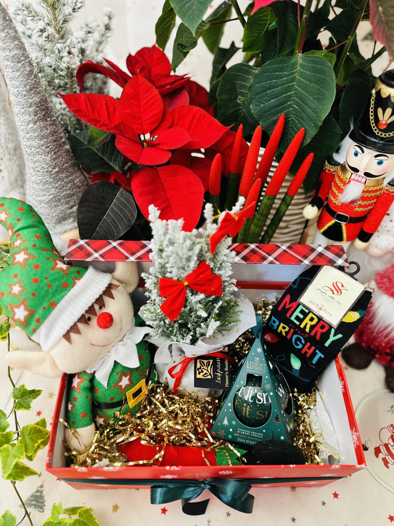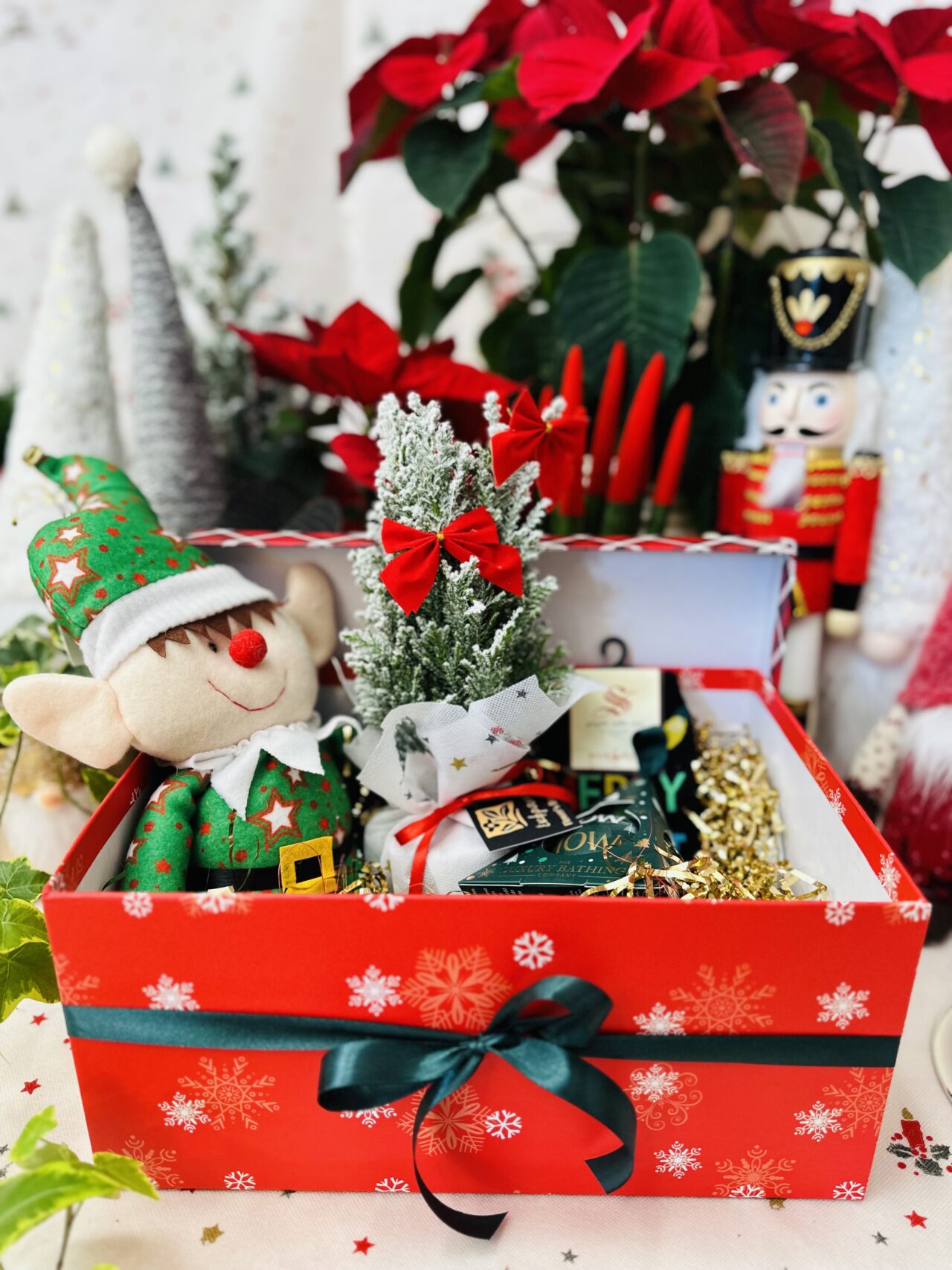 Το κουτί έχει διαστάσεις 32 x 22 εκατοστά και περιέχει ένα λούτρινο, ένα ελγούντι, ένα χριστουγεννιάτικο ζευγάρι κάλτσες «Merry & Bright» νούμερο 36-41, μια μπάλα με άλατα μπάνιου.
