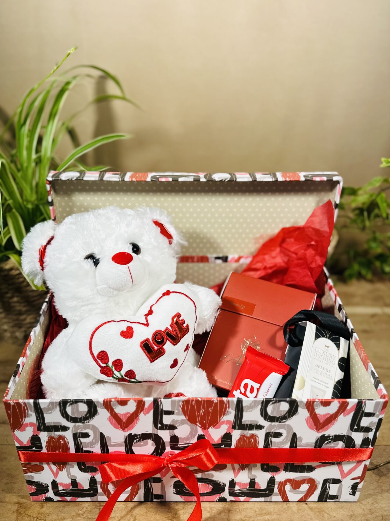 Περιέχει: 1 αρκουδάκι, 1 κερί 350 γρ, 1 κρέμα χεριών & μια lacta 30 γρ.
