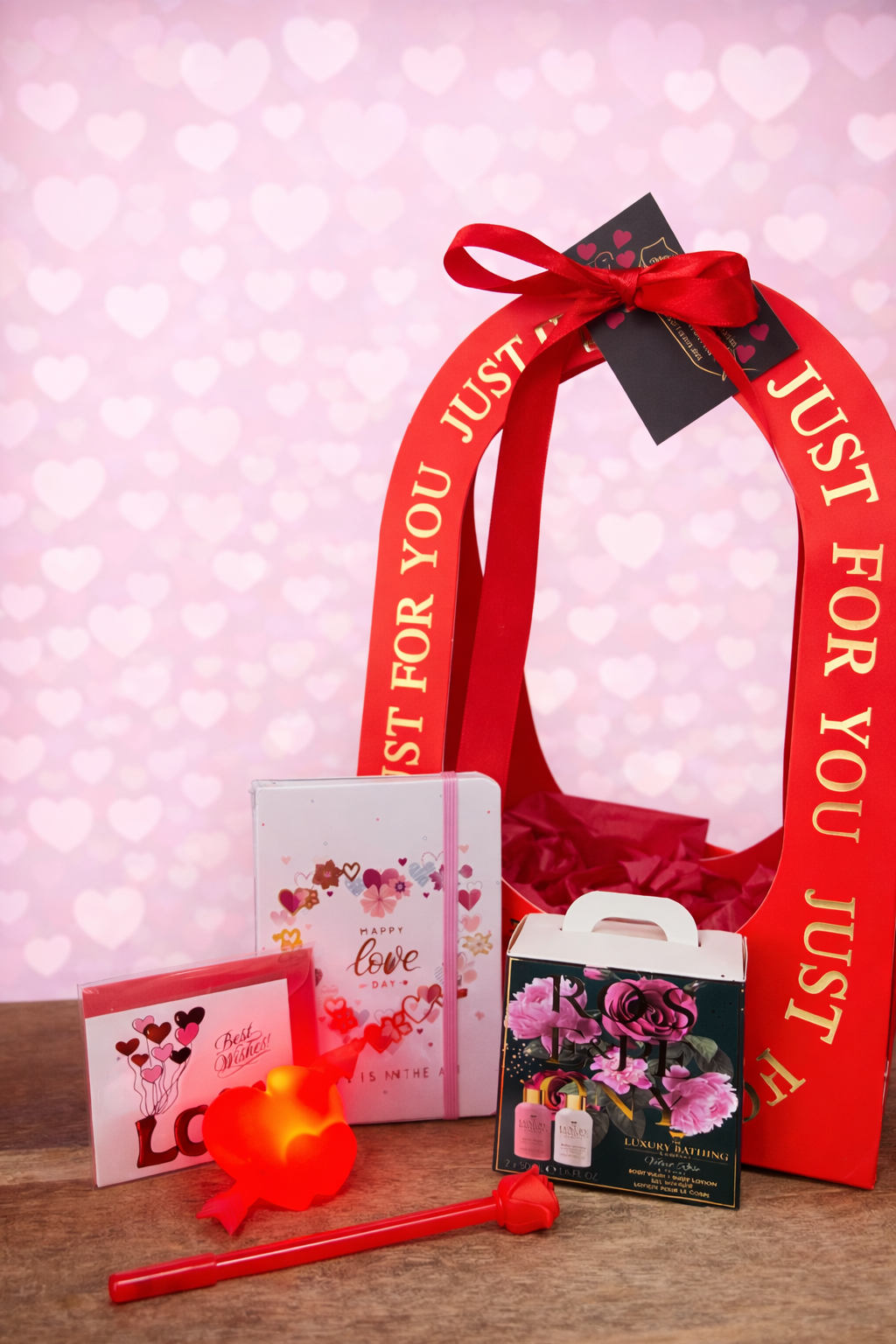 Η elegant συσκευασία Just For You φιλοξενεί μικρές εκπλήξεις αγάπης — κάρτα, σημειωματάριο,φωτάκι καρδούλα ,μίνι σετ σαπούνι με κρέμα σώματος και το στυλό τριαντάφυλλο ειναι δώρα που δημιουργούν μια γλυκιά, τρυφερή ατμόσφαιρα.
