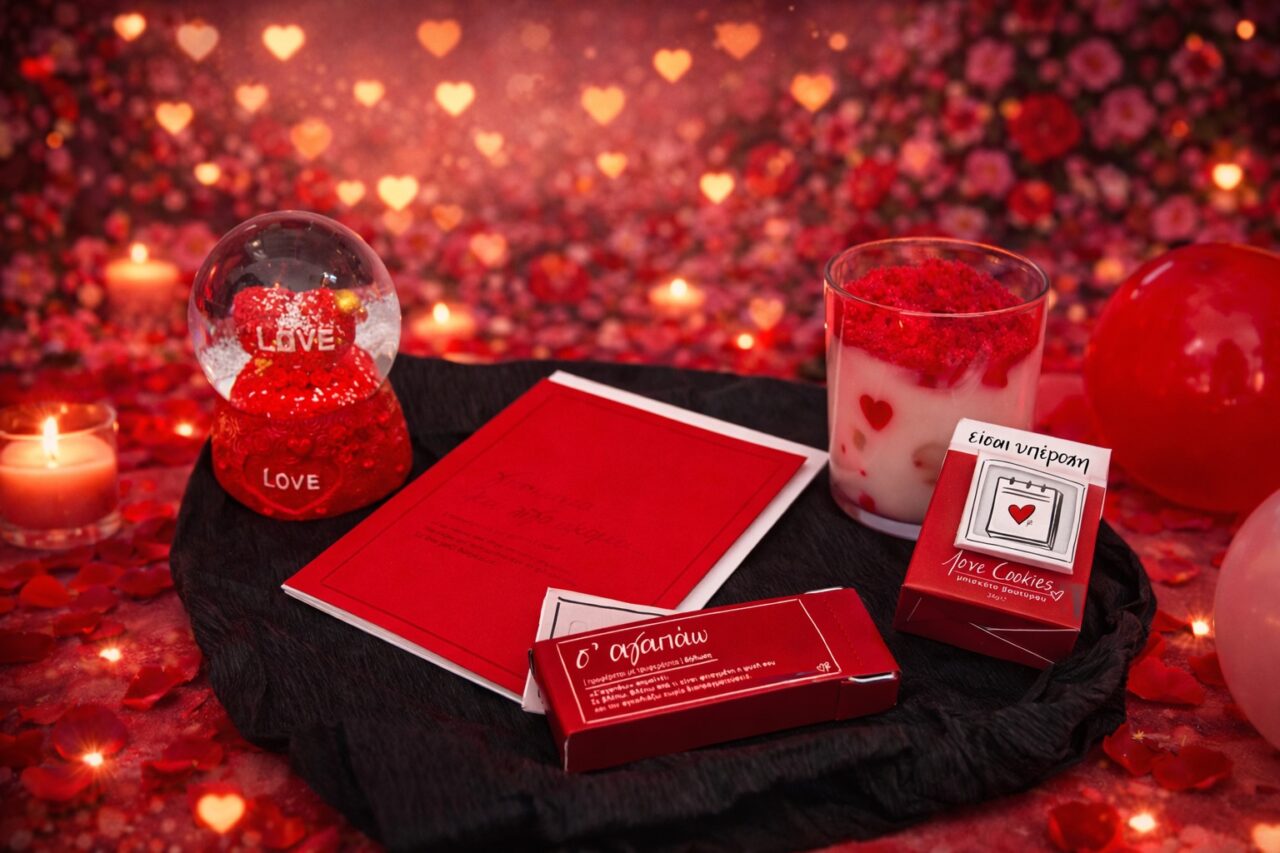 Κουτί έκπληξης μικρό το οποίο περιλαμβάνει χιονόμπαλα με καρδιά και φωτάκια, αρωματικό κερί σόγιας, μπρελόκ ΡΕΝΕ «σ’αγαπω», κάρτα ΡΕΝΕ* και μπισκότα με μαγνητάκι από τη συλλογή της ΡΕΝΕ*.