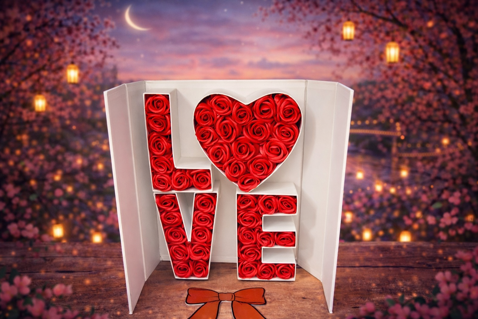 Υπέροχο αναδιπλούμενο κουτί με 42 αρωματικά τριαντάφυλλα σαπουνιού σε κόκκινο χρώμα που γράφει L❤️VE.Περιλαμβάνει χρυσό μαγνητικό φιόγκο που κρατάει το κουτί κλειστό και δημιουργεί συναίσθημα ανυπομονησίας και ρομαντικής διάθεσης.