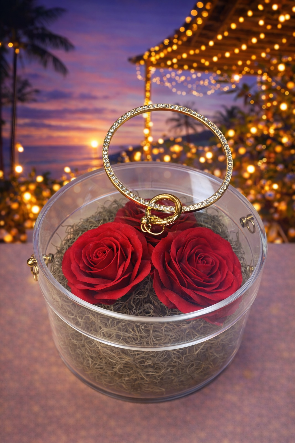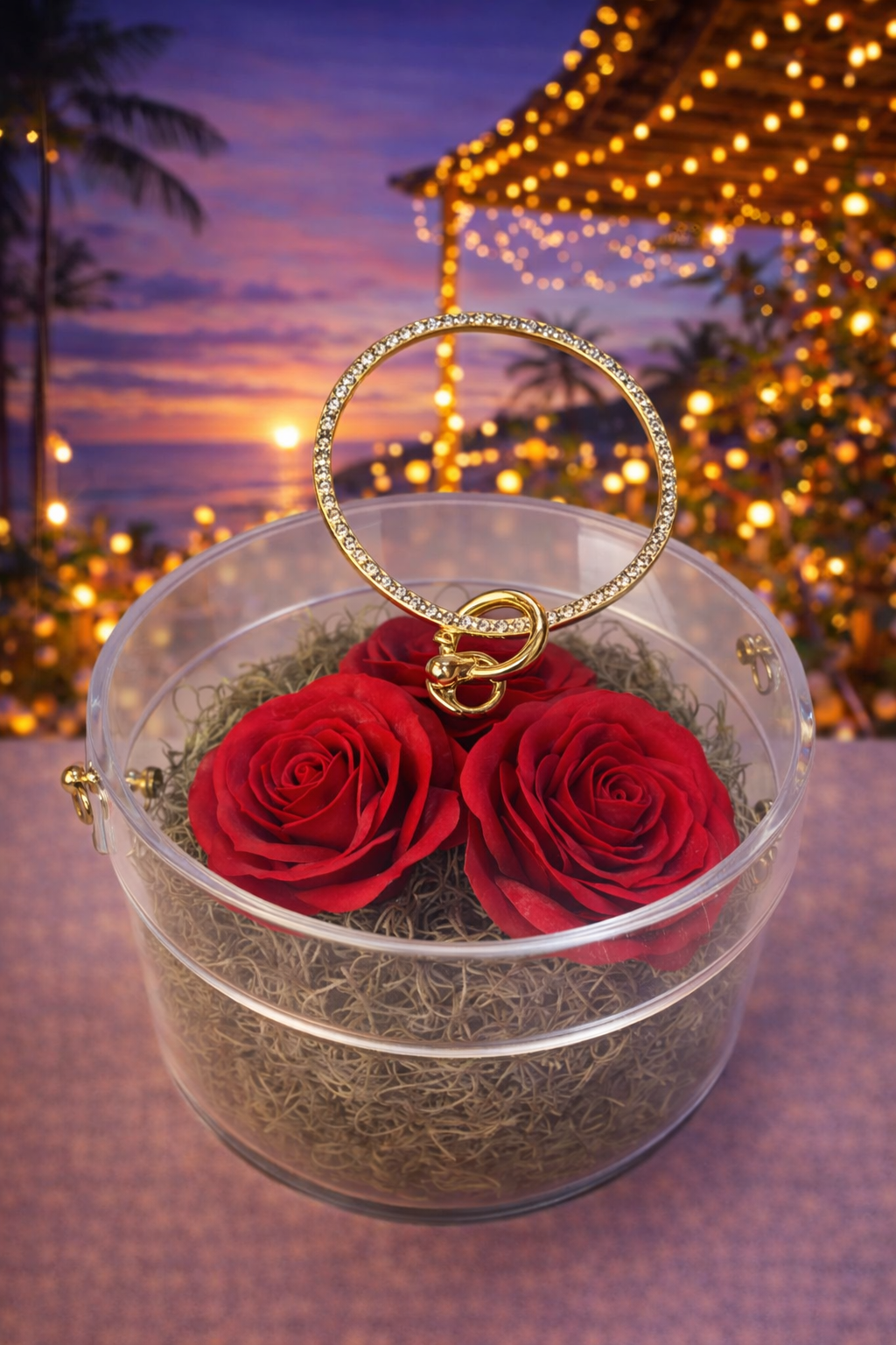 Πλέξιγκλας στρογγυλό με χερούλι στρογγυλό χρυσό με στρας .Περιλαμβάνει 3 κόκκινα αρωματικά τριαντάφυλλα σαπουνιού